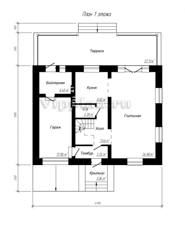 | Размеры дома: | 12.18м×12.48м |